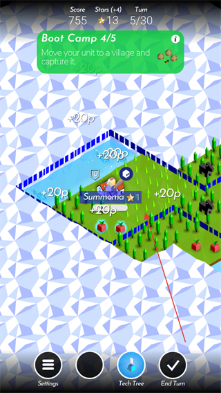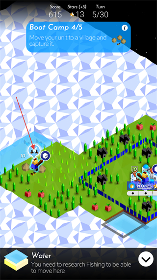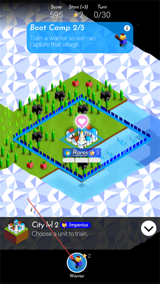 3、點(diǎn)擊士兵可以讓士兵前往指定位置,前往帳篷處點(diǎn)擊士兵上方的按鈕發(fā)起戰(zhàn)爭(zhēng)。