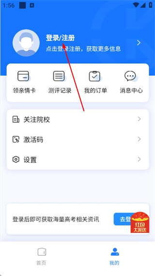 2、在個(gè)人頁(yè)面點(diǎn)擊登錄注冊(cè)選項(xiàng),進(jìn)入登錄界面。