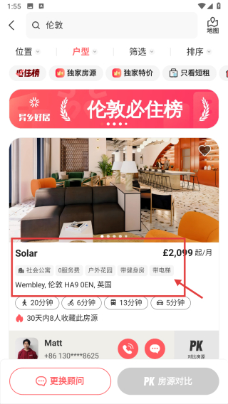 4、在篩選后的房源列表里,選擇Solar房源條目,進入房源詳情頁。