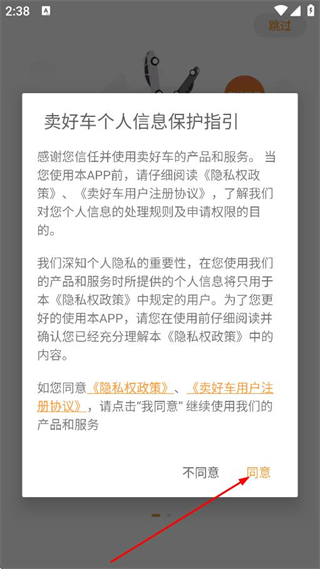 1、在個人信息保護(hù)指引彈窗中,點擊同意,進(jìn)入首頁。