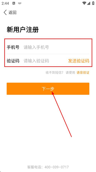 4、輸入手機(jī)號驗證碼,點擊下一步,完成賬號注冊操作。