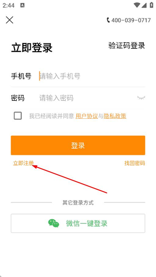 3、在個人頁面,點擊立即注冊,進(jìn)入新用戶注冊頁面。