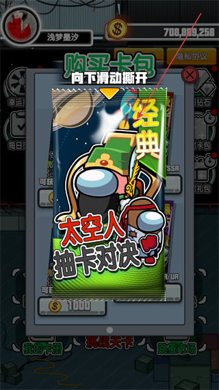 3、向下滑動(dòng)屏幕順著卡包邊緣撕開卡包,進(jìn)行開啟抽卡環(huán)境。