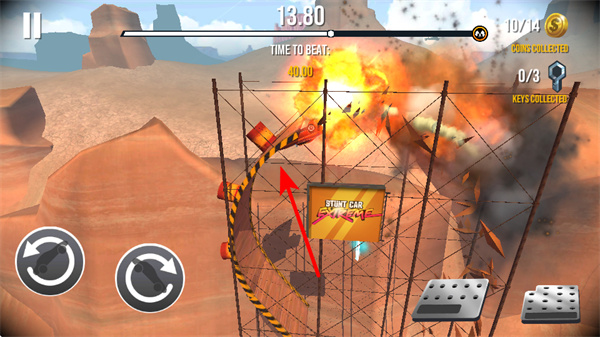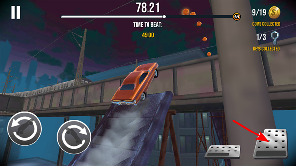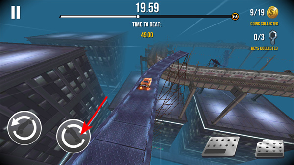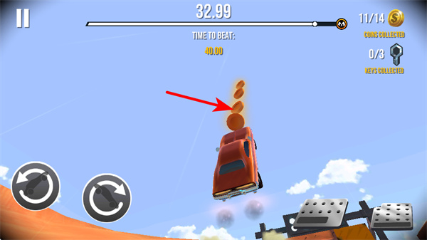2、在車輛跳躍時(shí)瞄準(zhǔn)空中金幣,可收集金幣提升關(guān)卡評(píng)分,這是積累資源的核心操作,收集時(shí)需把握車輛的跳躍軌跡金幣排列。