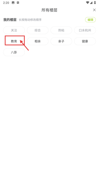 2、在所有樓層頁面,點擊教育選項,進入教育分類頁面。