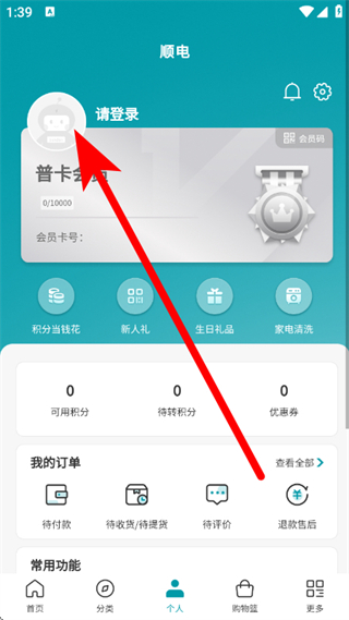 1、打開順電,點擊底部個人,進入個人中心頁面。
