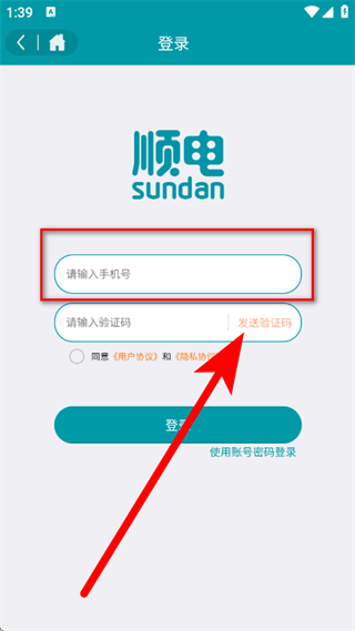 3、在登錄頁面,輸入手機號,點擊發(fā)送驗證碼。