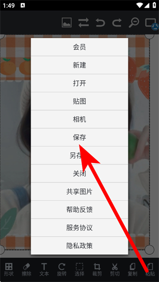 4、再次點(diǎn)擊頂部功能菜單,選擇保存,完成編輯。