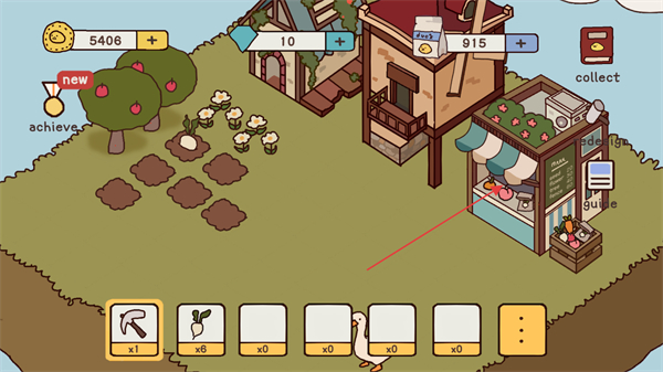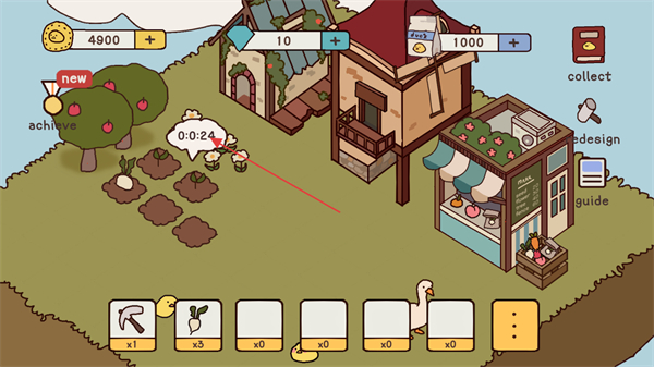 4、當(dāng)蔬菜成熟后,可以使用鋤頭進(jìn)行收獲,這樣就成功獲得到了鴨子們的食物。