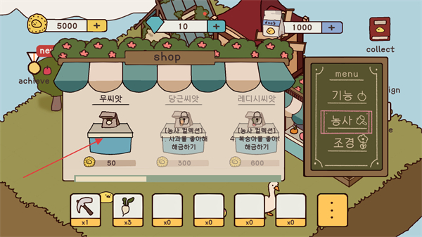 2、找到蔬菜種子菜單頁面,選擇一種種子花費(fèi)金幣進(jìn)行購買。
