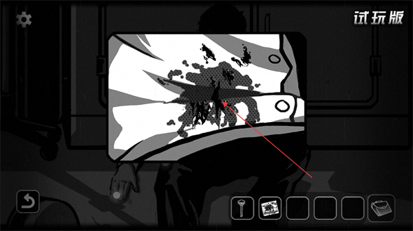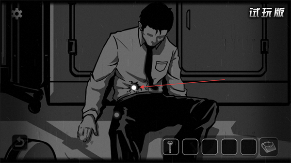 1、觀察場景中受傷的人物,點擊其腹部傷口區(qū)域,獲取線索。