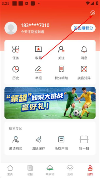 2、在個人頁面點擊右上角的設置圖標,進入設置界面。