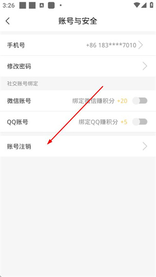 4、在賬號與安全頁面點擊賬號注銷,進入注銷賬號的申請頁面。