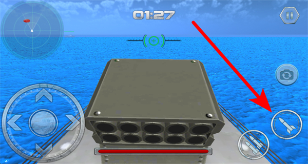 2、游戲中點(diǎn)擊右側(cè)導(dǎo)彈發(fā)射按鈕,操控驅(qū)逐艦發(fā)射武器,注意觀察雷達(dá)和目標(biāo)位置,確保攻擊指令準(zhǔn)確下達(dá)。