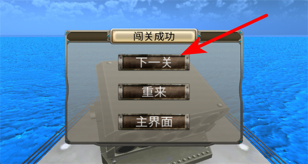 4、闖關(guān)成功后,點(diǎn)擊下一關(guān)按鈕繼續(xù)挑戰(zhàn)更高難度的海戰(zhàn)任務(wù),通過(guò)不斷通關(guān)積累經(jīng)驗(yàn),提升艦作戰(zhàn)能力。