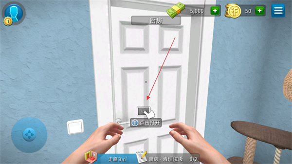 2、到達(dá)廚房門口后,點(diǎn)擊門上的打開按鈕,進(jìn)入廚房。