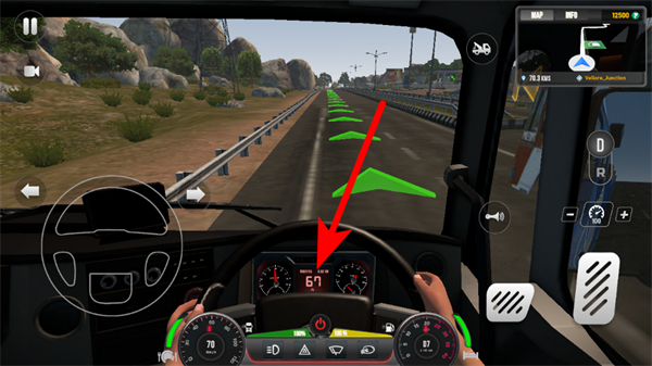 1、在卡車(chē)大師印度游戲中,通過(guò)儀表盤(pán)實(shí)時(shí)關(guān)注車(chē)速,根據(jù)道路情況靈活調(diào)整,保障行駛穩(wěn)定。
