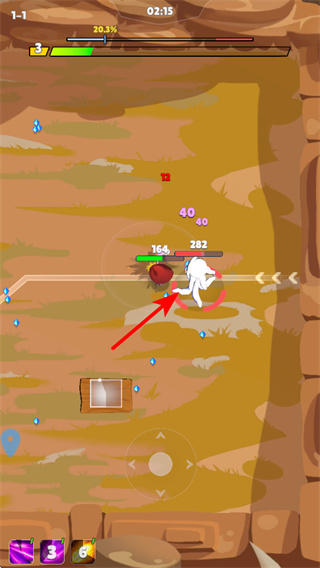 4、操控角色攻擊敵人如紅色怪物,削減生命值獲勝,這是推進(jìn)關(guān)卡的關(guān)鍵操作,把握敵人距離攻擊節(jié)奏。
