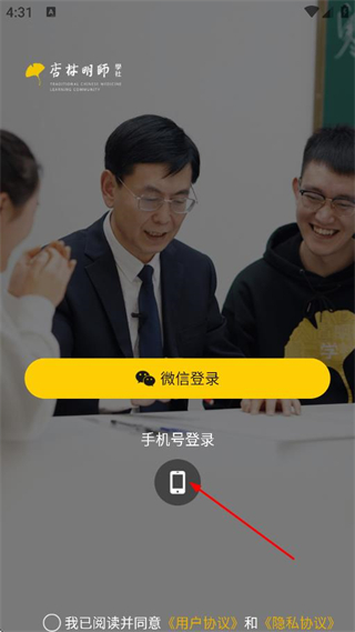 3、在登錄選擇頁面,點擊手機號登錄,進入手機號登錄頁面。