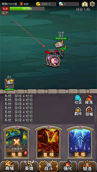 2、戰(zhàn)士自動攻擊怪物,每次攻擊可獲得經(jīng)驗如+28,積累經(jīng)驗提升等級。