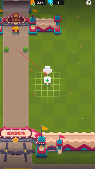 1、打開(kāi)游戲進(jìn)入到主題公園內(nèi)部,點(diǎn)擊地面上的加號(hào)按鈕開(kāi)始建設(shè)公園。