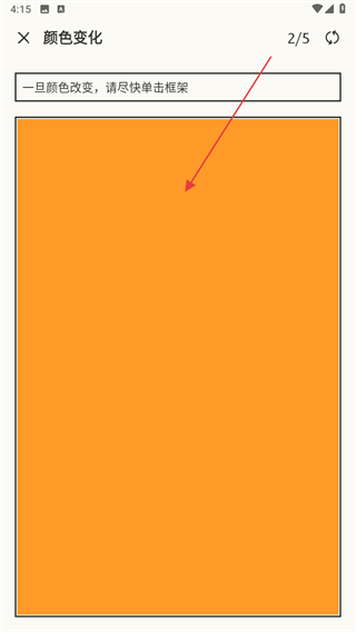 2、在顏色變化關卡內,一旦下方的方框內出現(xiàn)除白色外的其他顏色,立即點擊框架進行速度訓練。