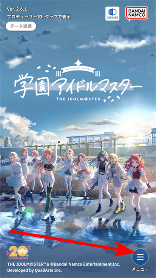 1、打開學園偶像大師游戲,點擊右下角的メニュー菜單按鈕。