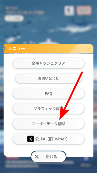 2、在菜單中點擊ユーザーデータ削除用戶數(shù)據(jù)刪除選項。