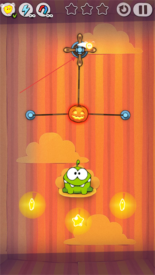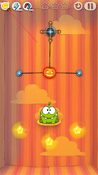 2、利用關(guān)卡內(nèi)的一切設(shè)施,移動糖果讓小青蛙吃到糖果即為勝利。