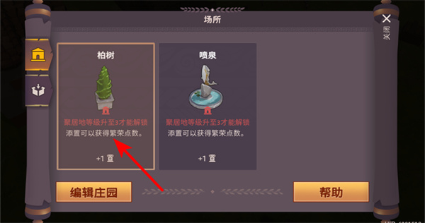 3、在場所界面中,解鎖并放置柏樹等裝飾,可獲得繁榮點(diǎn)數(shù),這是提升莊園等級的重要途徑,解鎖時(shí)需滿足地域等級等條件。