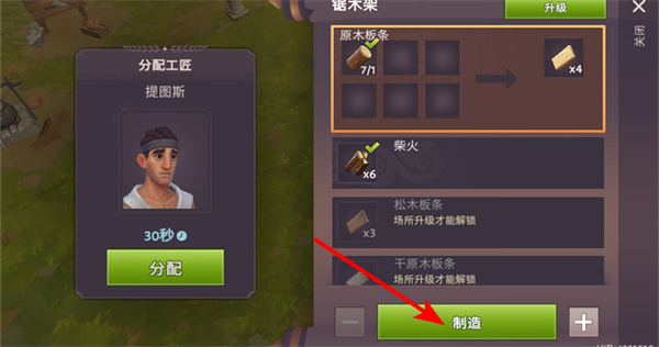 4、在鋸木架等建筑中,將原木等資源制造成木板條等道具,這是資源利用的關(guān)鍵操作,制造時(shí)需確保資源充足并合理分配工匠。