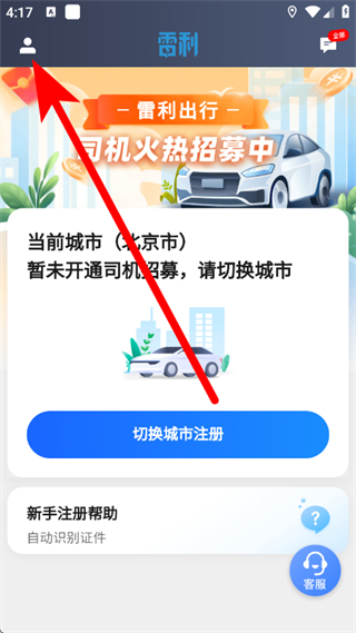 1、打開雷利出行司機端,點擊頁面左上角的個人圖標。