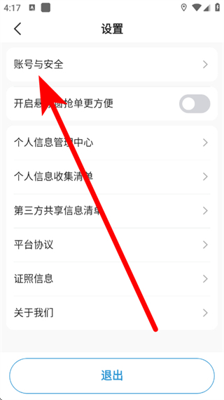 3、在設置頁面,點擊賬號與安全,進入賬號與安全頁面。