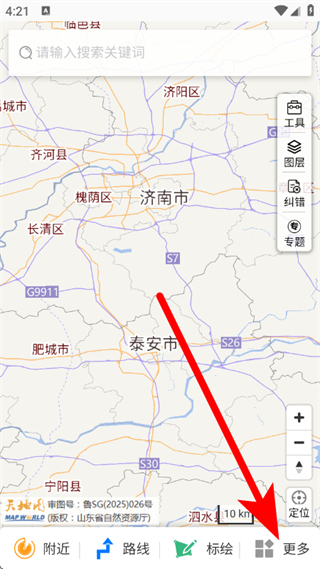 1、打開天地圖山東,在地圖頁面,點(diǎn)擊底部更多。