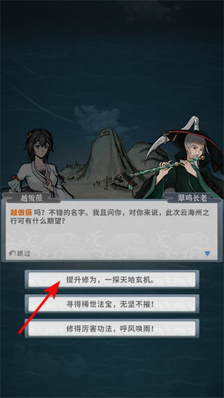 3、與NPC對話時,選擇符合自身發(fā)展方向的選項如提升修為,并獲得對應(yīng)獎勵,選擇時需考慮角色的成長規(guī)劃。