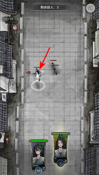 4、戰(zhàn)斗場景中,點擊角色可操控其移動和攻擊敵人,戰(zhàn)斗關(guān)注剩余敵人數(shù)量角色血量,確保順利擊敗所有敵人。