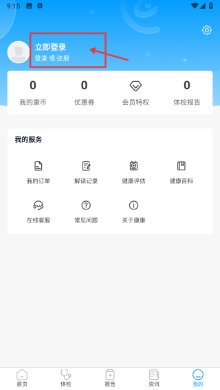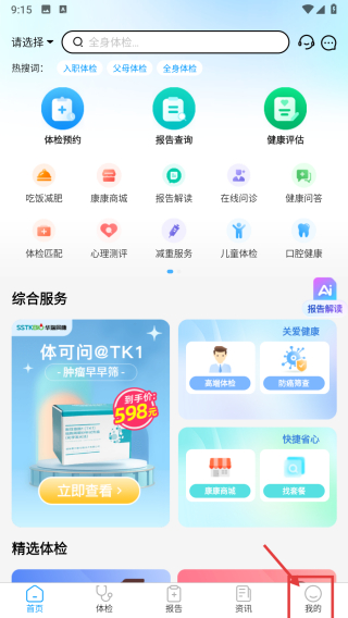 1、打開健康體檢類APP,點(diǎn)擊底部我的選項(xiàng),進(jìn)入個(gè)人中心頁面。
