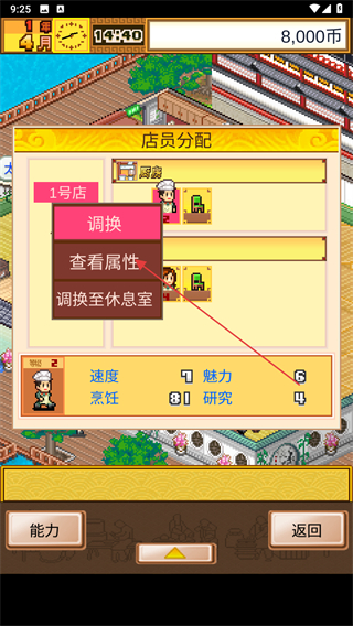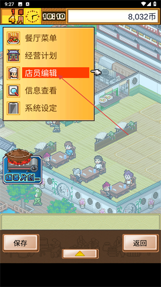 1、進(jìn)入游戲后打開右下角的菜單,點(diǎn)擊選擇店員編輯調(diào)整店內(nèi)員工。