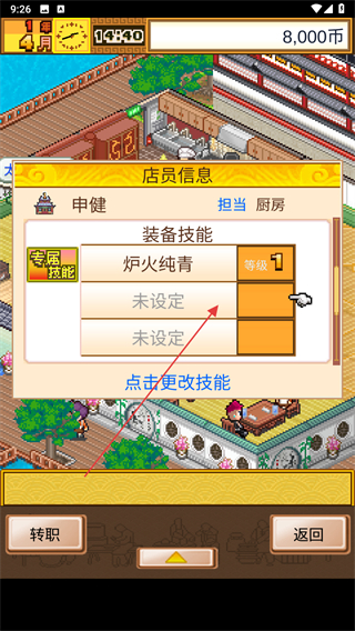 3、在店員信息中,可以查看店員的專屬技能,點(diǎn)擊技能欄可以給店員學(xué)習(xí)新的技能。