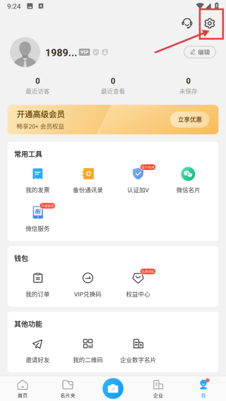 1、打開商務名片類APP,點擊底部我的選項,進入個人中心頁面。