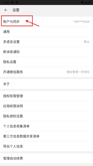 3、在設置界面,點擊賬戶與同步選項,進入賬戶管理頁面。