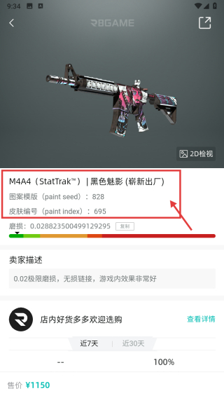 3、在飾品詳情頁,查看該飾品的參考價、磨損度等基礎(chǔ)信息。