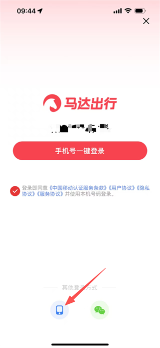 4、在登錄方式選擇頁面,點擊手機圖標,進入一鍵登錄流程。