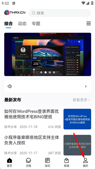 1、在技術(shù)宅首頁,點擊右下角我的選項,進(jìn)入個人中心頁面。