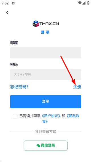 3、在登錄頁面,點擊注冊選項,進(jìn)入注冊頁面。