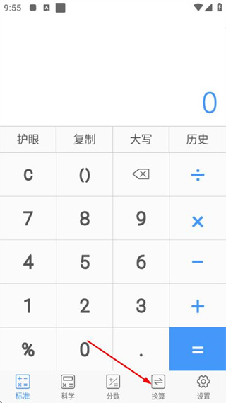 1、點(diǎn)擊底部的換算,進(jìn)入單位換算頁(yè)面。