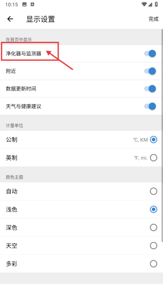 4、在顯示設(shè)置頁面,找到凈化器與監(jiān)測器選項,進行相關(guān)顯示設(shè)置操作。