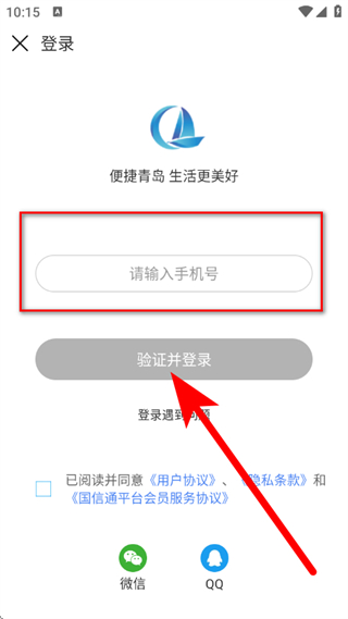 3、在登錄頁面,輸入手機(jī)號(hào)后,點(diǎn)擊驗(yàn)證并登錄。