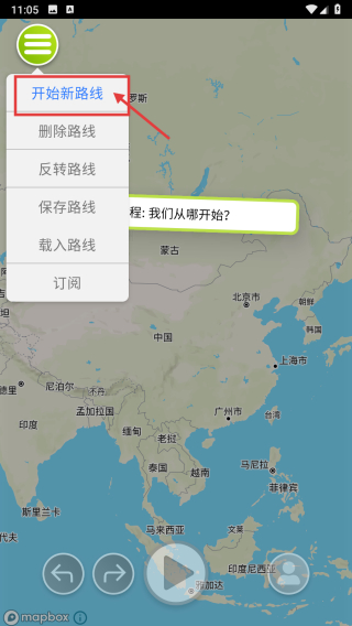 2、在功能菜單中,點(diǎn)擊開始新路線選項(xiàng),進(jìn)入路線規(guī)劃頁面。