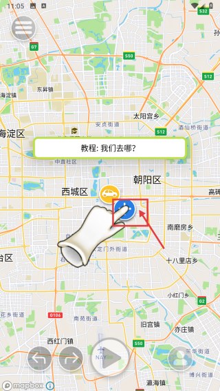 4、在地圖頁面,點(diǎn)擊目的地選擇按鈕,開始規(guī)劃目的地路線。